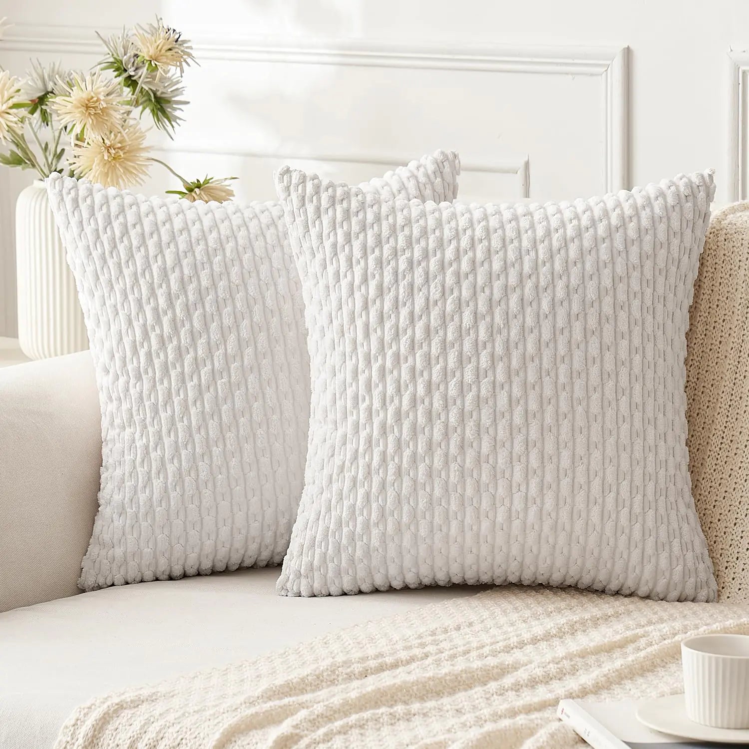 ANRODUO Pack of 2 White Pillow Covers Decorative Throw Pillows 18x18 Inch for Couch Bed Living Room Soft Corduroy Striped Square Cushion Covers Throw Pillows Rustic Farmhouse Boho Spring Home Decor